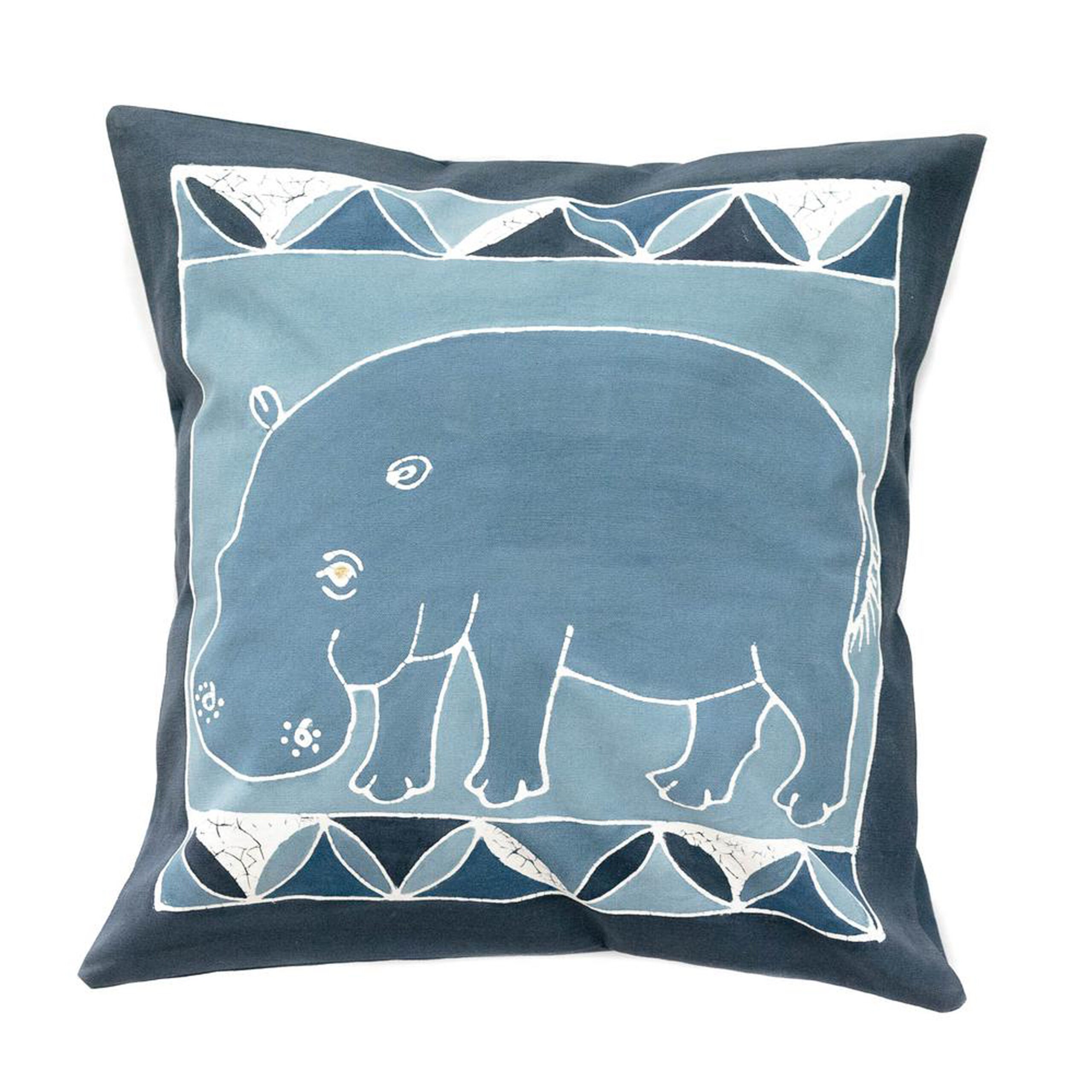 Housse de coussin animals indigo hippopotame